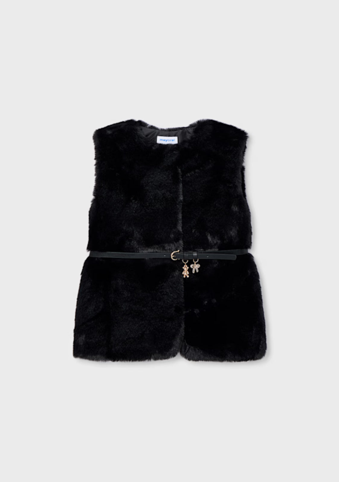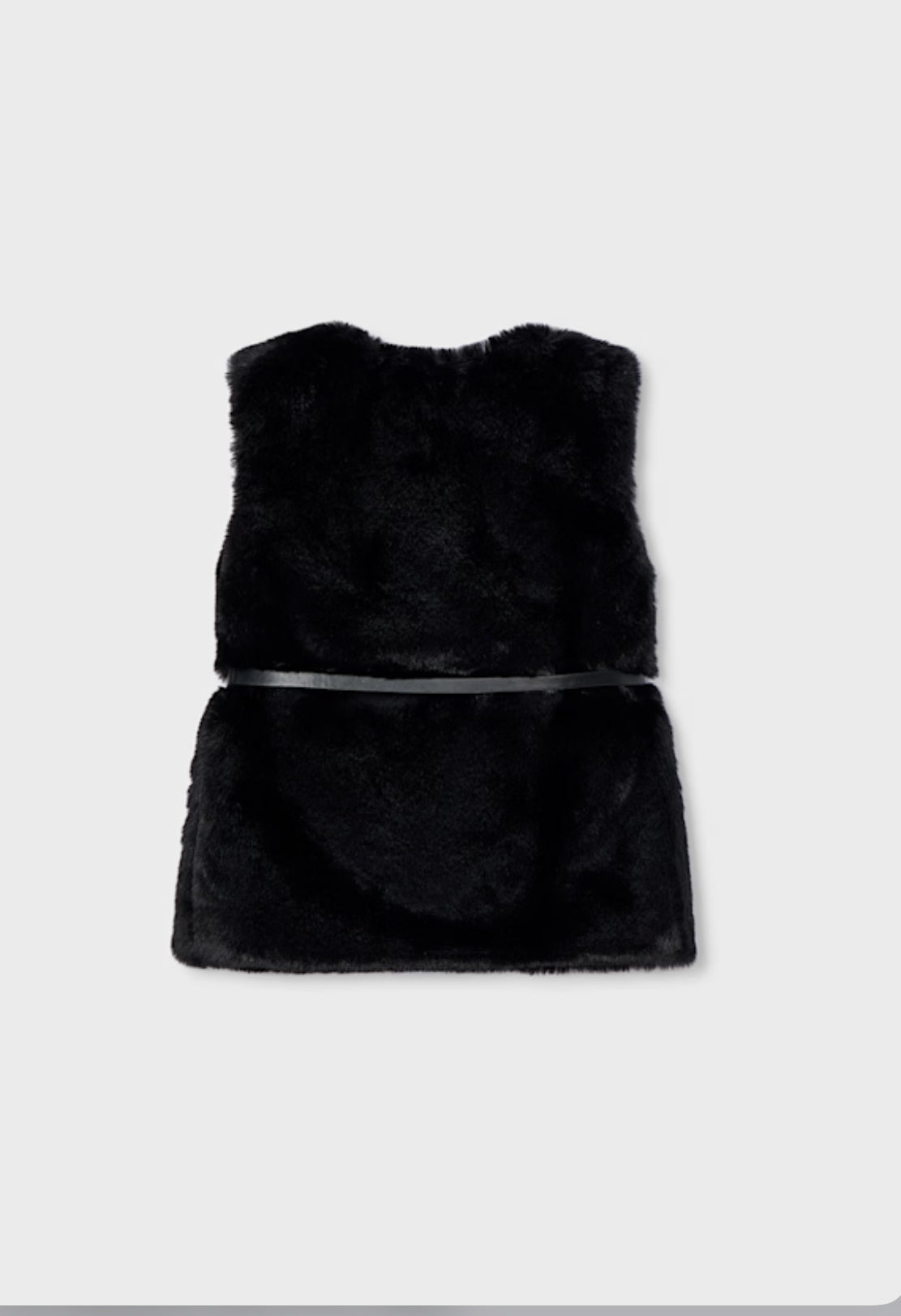 This girls' black faux fur vest provides both warmth and style. Made with a luxurious faux fur material, this vest is perfect for keeping your child cozy during the colder months. Its stylish design adds a touch of sophistication to any outfit.